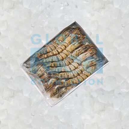 Didžiosios tigrinės krevetės, 13-15vnt, 750g, glazūra 25% (su galva, su kiautu)
